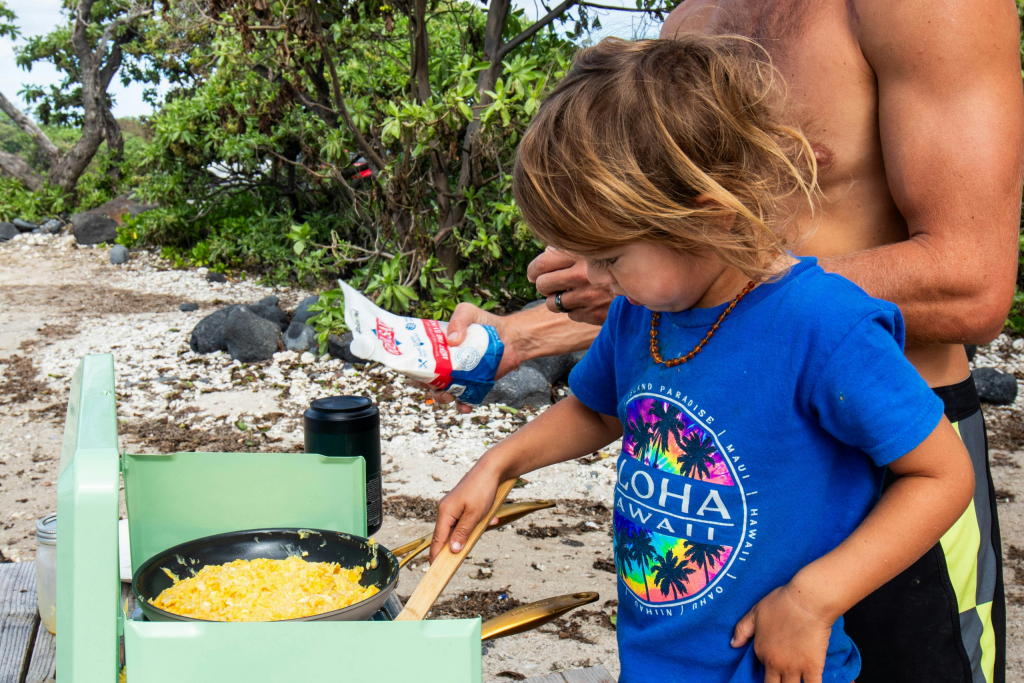 Sichere Umgebung: Achtet auf scharfe Messer und heiße Herdplatten. Erklärt die Gefahren und zeigt, wie man sicher mit Küchenutensilien umgeht. Schützt durch Aufklärung, nicht durch Verbote. Wenn ihr noch ungeübt seid, holt euch Hilfe von einer weiteren erwachsenen Person. (Diese kann auch super Fotos für euch machen.)